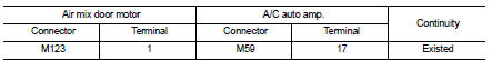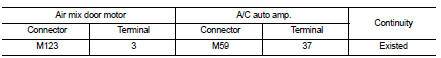 3. Check continuity between air mix door motor harness connector and A/C auto amp. harness connector.