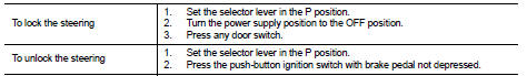 - Brake pedal: Not depressed 2. Turn ignition switch OFF.