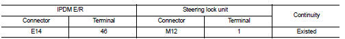 2. Check continuity between IPDM E/R harness connector and steering lock unit harness connector.