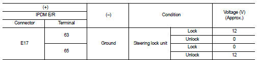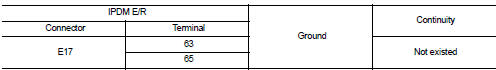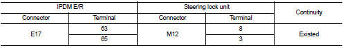 2. Check continuity between IPDM E/R harness connector and steering lock unit harness connector.