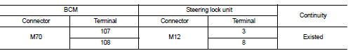 2. Check continuity between BCM harness connector and steering lock unit harness connector.