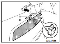 5. Disengage back door finisher fixing clips using a remover tool (A), and then remove back door finisher.
