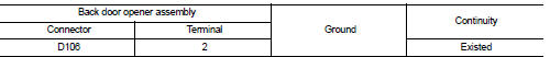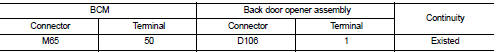 2. Check continuity between BCM harness connector and back door opener assembly harness connector.