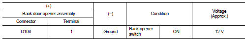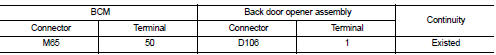 2. Check continuity between BCM harness connector and back door opener assembly harness connector.