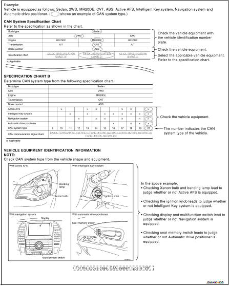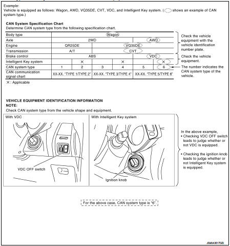 : CAN system type is easily checked with the vehicle equipment identification information shown in the chart.