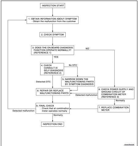 • Reference 3···MWI-51, "COMBINATION METER : Diagnosis Procedure".