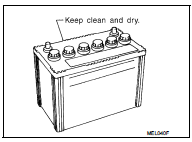• The battery surface (particularly its top) should always be kept clean and dry.