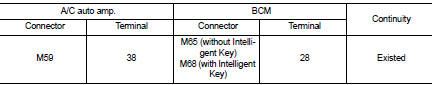 3. Check continuity A/C auto amp. harness connector and BCM harness connector.