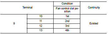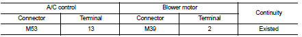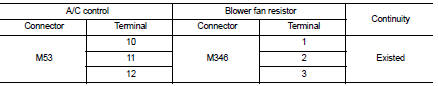 2. Check blower fan resistor. Refer to HAC-230, "Component Inspection (Blower Fan Resistor)".