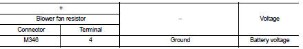 4. Check voltage between blower fan resistor harness connector and ground.