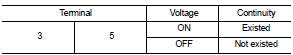 2. Check continuity between blower relay terminal 3 and 5 when the voltage is supplied between terminal 1 and 2.