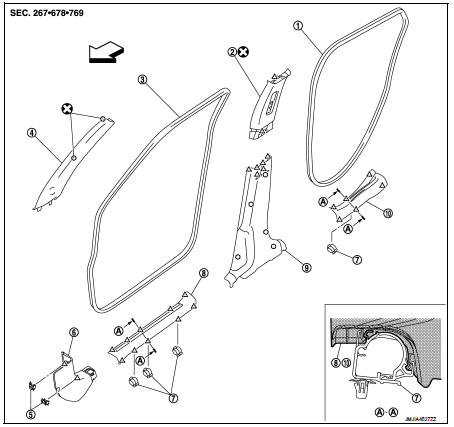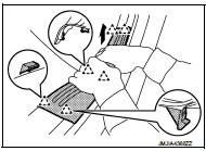 • Replace front pillar garnish with a new part after removal. Never reuse front pillar garnish.