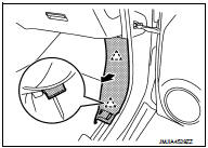 1. Remove rear kicking plate inner. Refer to INT-19, "KICKING PLATE INNER : Removal and Installation".