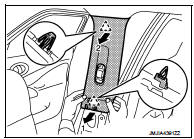 1. Remove center pillar lower garnish. Refer to INT-20, "CENTER PILLAR LOWER GARNISH : Removal and Installation".