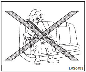 • Make sure the shoulder portion of the belt is away from the child’s face and neck and the lap portion of the belt does not cross the stomach.
