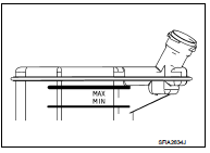 8. Check that the fluid level in the reservoir tank is within the specified range after air bleeding. Refer to BR- 80, "Inspection".