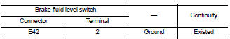 5. Check continuity between brake fluid level switch harness connector and ground.