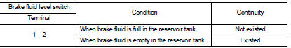 Check brake fluid level switch. Refer to BRC-73, "Component Inspection".