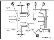- Check the lapping length (E) of sub-bracket (C) and slide plate (D).