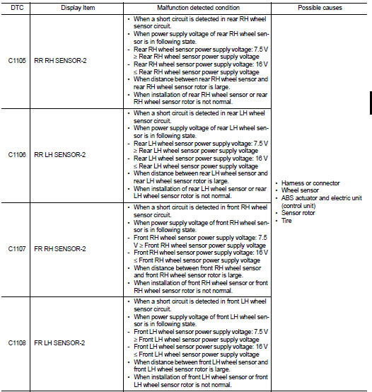 Nissan Juke Service and Repair Manual : C1105, C1106, C1107, C1108 wheel sensor