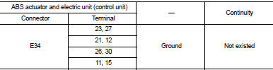 4. Check continuity between ABS actuator and electric unit (control unit) harness connector and the ground.