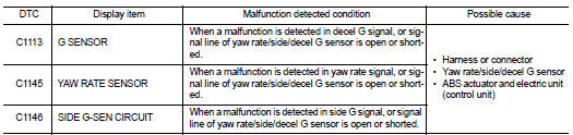 Nissan Juke Service and Repair Manual : C1113, C1145, C1146 yaw rate/side/decel g sensor