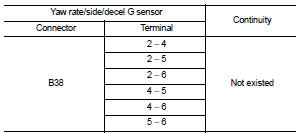 Check continuity between each terminals of yaw rate/side/decel G sensor harness connector.