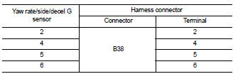 2. Connect following terminals between yaw rate/side/decel G sensor and harness connector.
