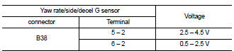 4. Check voltage between yaw rate/side/decel G sensor harness connector terminals.