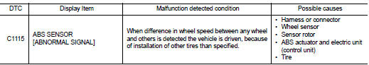 Nissan Juke Service and Repair Manual : C1115 wheel sensor