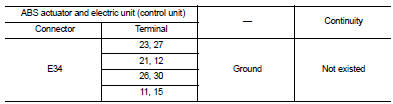 5. Check continuity between ABS actuator and electric unit (control unit) harness connector and the ground.