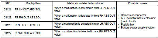 Nissan Juke Service and Repair Manual : C1121, C1123, C1125, C1127 ABS out valve system