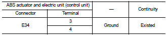 2. Check continuity between ABS actuator and electric unit (control unit) harness connector and the ground.