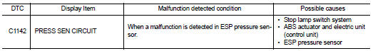 Nissan Juke Service and Repair Manual : C1142 press sensor