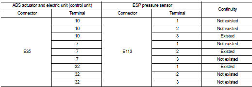 4. Check continuity between ESP pressure sensor harness connector and ABS actuator and electric unit (control unit) harness connecto