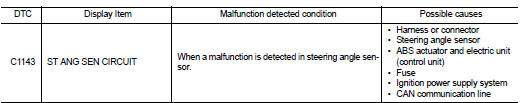 Nissan Juke Service and Repair Manual : C1143 steering angle sensor