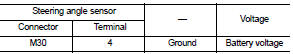 Check steering angle sensor pin terminals for damage or loose connection with harness connector.