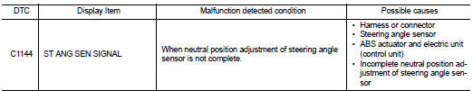 Nissan Juke Service and Repair Manual : C1144 incomplete steering angle sensor adjustment