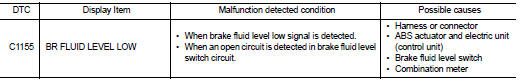 Nissan Juke Service and Repair Manual : C1155 brake fluid level switch