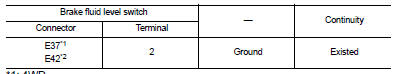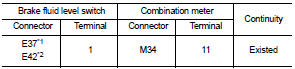 4. Check continuity between brake fluid level switch harness connector and combination meter harness connector.