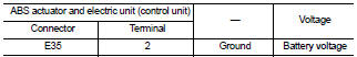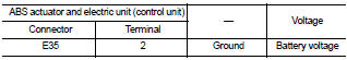 3. Check voltage between ABS actuator and electric unit (control unit) harness connector and ground.