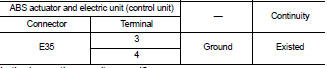 2. Check continuity between ABS actuator and electric unit (control unit) harness connector and the ground