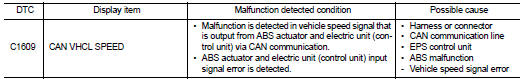 Nissan Juke Service and Repair Manual : C1609 vehicle speed signal