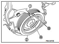 • If they do not face inside, rotate crankshaft pulley once more (360 degrees) and align as shown in the figure.
