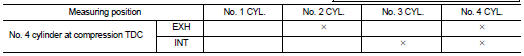 2. Measure the valve clearance with the following procedure: a. Set No. 1 cylinder at TDC of its compression stroke.