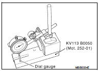 Set up the following assembly using KV113B0050 (Mot. 252-01) (Commercial service tool) or equivalent tool and dial gauge, then calibrate the gauge.