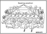 16. Lay four beads of Loctite with a width of 1 mm (0.04 in) on brackets 1 and 6 of the cylinder head.
