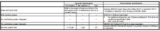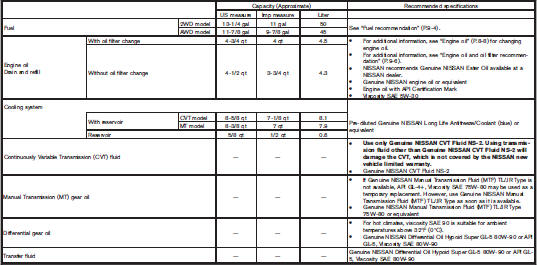 Nissan Juke Owners Manual : Capacities and recommended fuel/lubricants