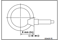 • If any chipped mark [about 0.1 mm, (0.004 in)] or other damage on the contact sides of the lips of the companion flange is found, replace.