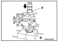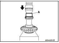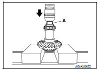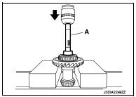1. Press drive gear to center stem, using a drift (A) (SST:ST33052000).